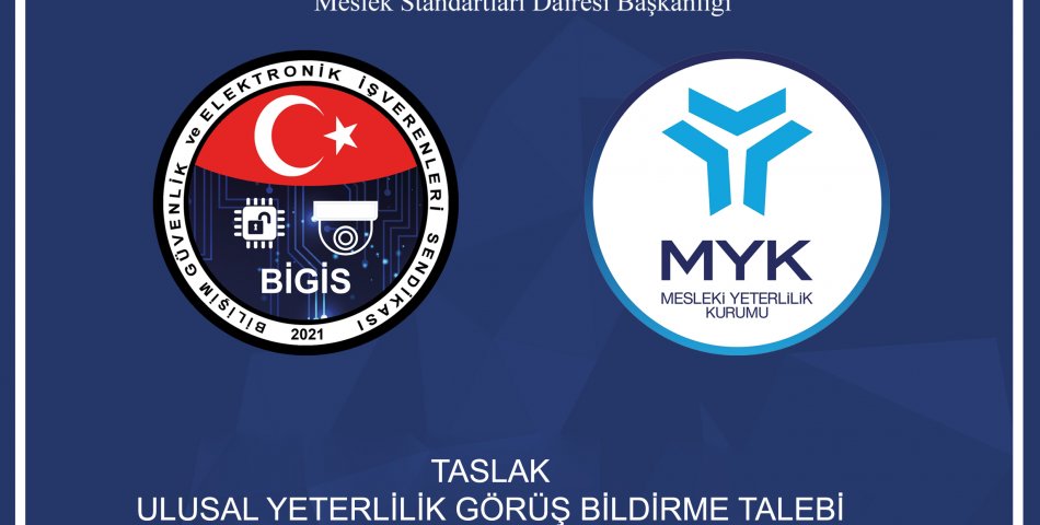 Bilişim Güvenlik ve Elektronik İşverenleri Sendikası BİGİS ile T.C. Mesleki Yeterlilik Kurumu (MYK) arasında imzalanan iş birliği protokolü kapsamında hazırlanan Elektronik Güvenlik Sistemleri Seviye 4 ve Seviye 5 Ulusal Meslek Standartları, MYK tarafından onaylanarak Resmî Gazete’de yayımlanmıştır.